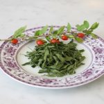 Herbal tea – Steep dried goji leaves alone or with chrysanthemum and honeysuckle to clear Heat and refresh the eyes.